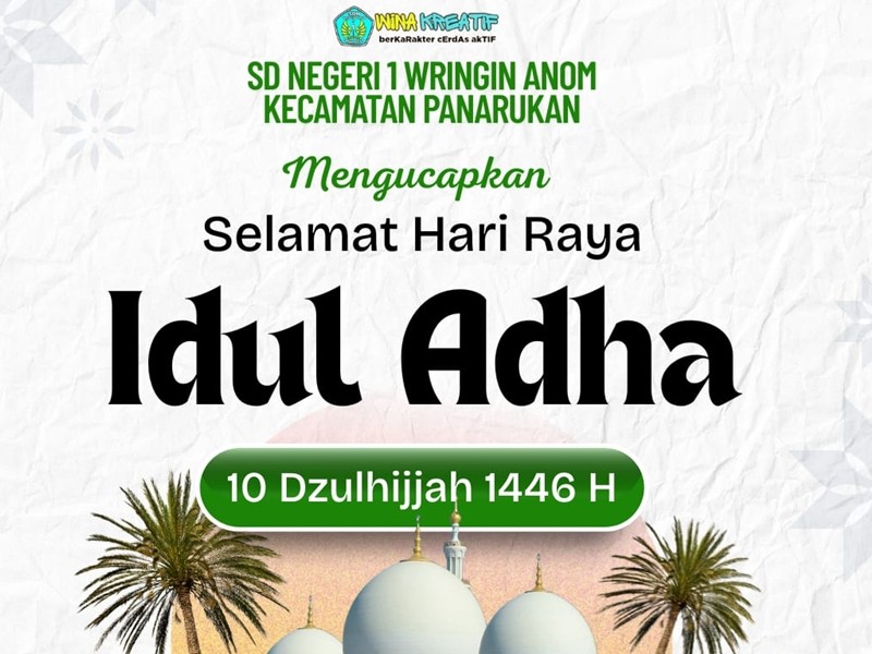 Pada momen Idul Adha ini, SD Negeri 1 Wringin Anom juga turut mengajak seluruh warga sekolah—guru, siswa, staf, serta orang tua murid—untuk menjadikan momentum ini sebagai sarana memperkuat akhlak mulia, menumbuhkan karakter sosial, dan meningkatkan semangat gotong royong dalam berbagai aktivitas pendidikan. Kami percaya bahwa pendidikan tidak hanya tentang transfer ilmu, namun juga penanaman nilai-nilai kehidupan yang luhur, seperti empati, kepedulian, tanggung jawab, dan semangat pengabdian.